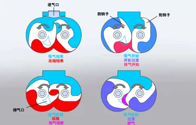 1、齿形压缩机:其压缩元件由两个转子组成,转子在压缩腔内彼此向前转动。压缩过程包括吸气、压缩和排气三阶段。齿形压缩机的转子通过一对齿轮保持同步,无油齿形压缩机可以达到的最大压力比为4:5