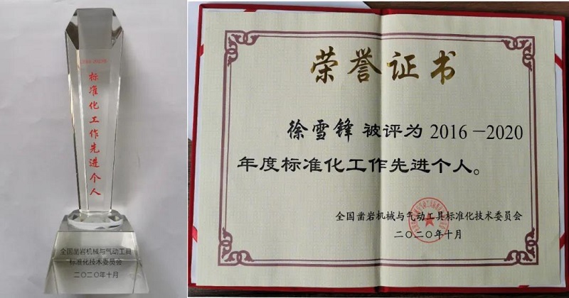10月15日-17日,全国凿岩机械与气动工具标准化技术委员会第六届五次年会暨标准审查会议在宁夏银川召开。浙江开山重工股份有限公司被评为2016-2020年标准化工作先进单位,公司首席设计师、技术中心主任徐雪锋被评为标准化工作先进个人荣誉称号。