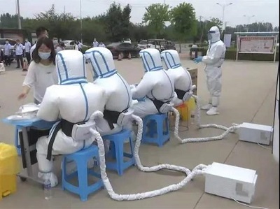 在国外疫情不断恶化的今天,国内不时也会受到影响,医护人员需要在高温天,穿防护服为排队人群做核酸检测,经常有人因此中暑晕倒,很多市民都非常心疼。于是就有人发挥了奇思妙想,利用压缩空气原理研发出了新型防护服,解决了社会热点问题,得到了国家级媒体的赞扬。